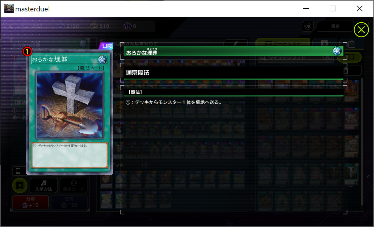 すると60枚の中からたった3枚の芝刈りをどうやって引くの?という話になるわけですが、芝刈りの代わりになるような墓地肥やしカードを入れたり、芝刈りを引くための手段をいっぱい入れたりします。