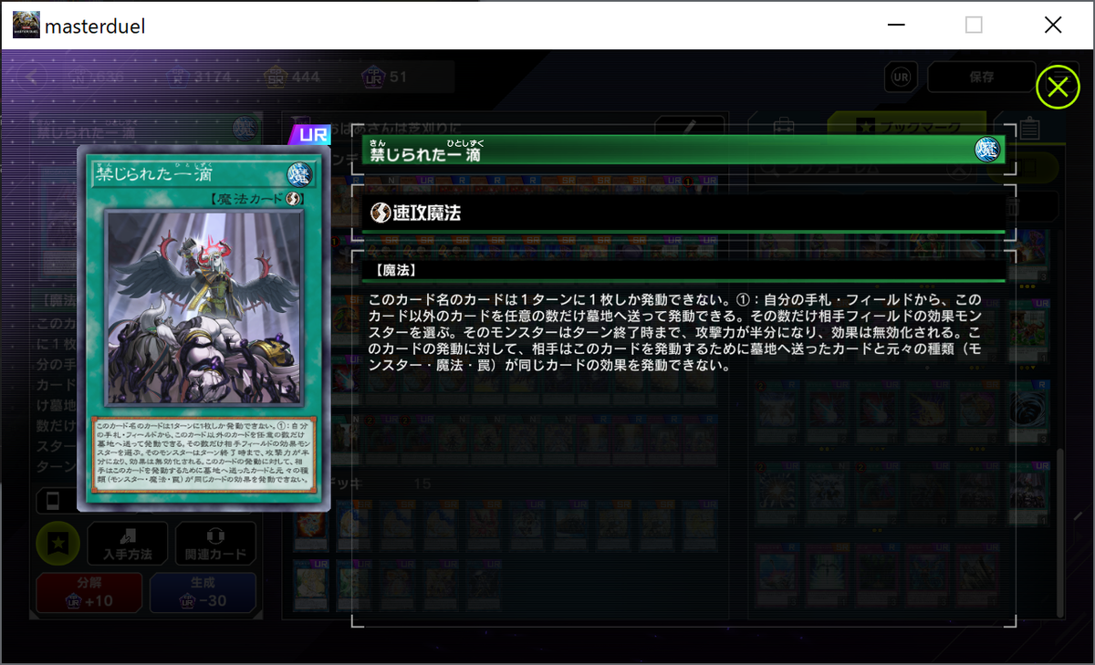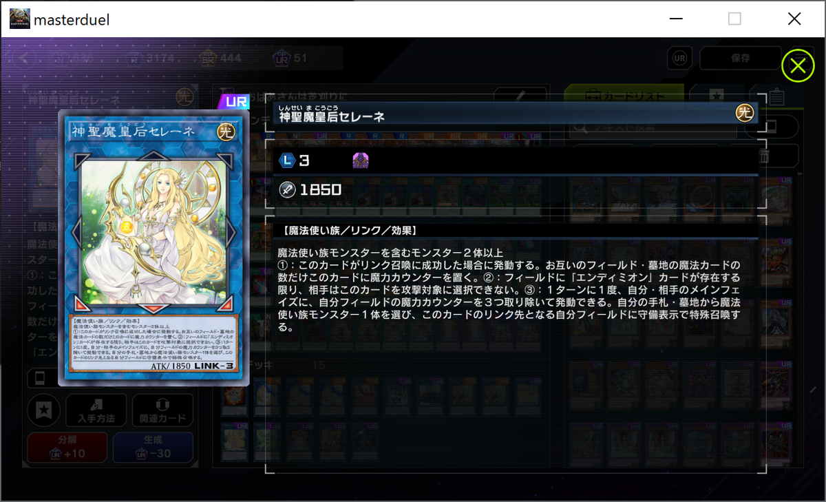 マスターデュエルにはまだ《ウィッチクラフト・バイスマスター》という強い融合モンスターが実装されていないため、これが来たらもっと戦えるのかなぁ。