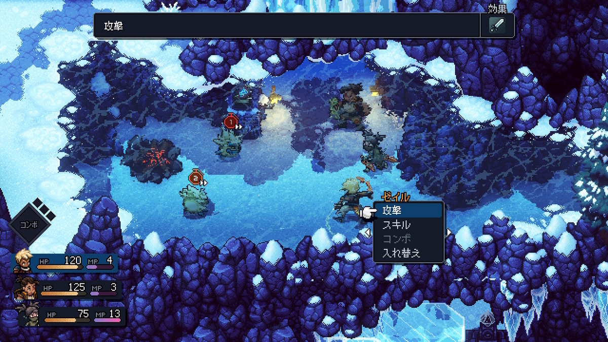 クロノトリガーがベースでありつつ、マリオRPGのような要素も取り入れたターン制のコマンドバトル。